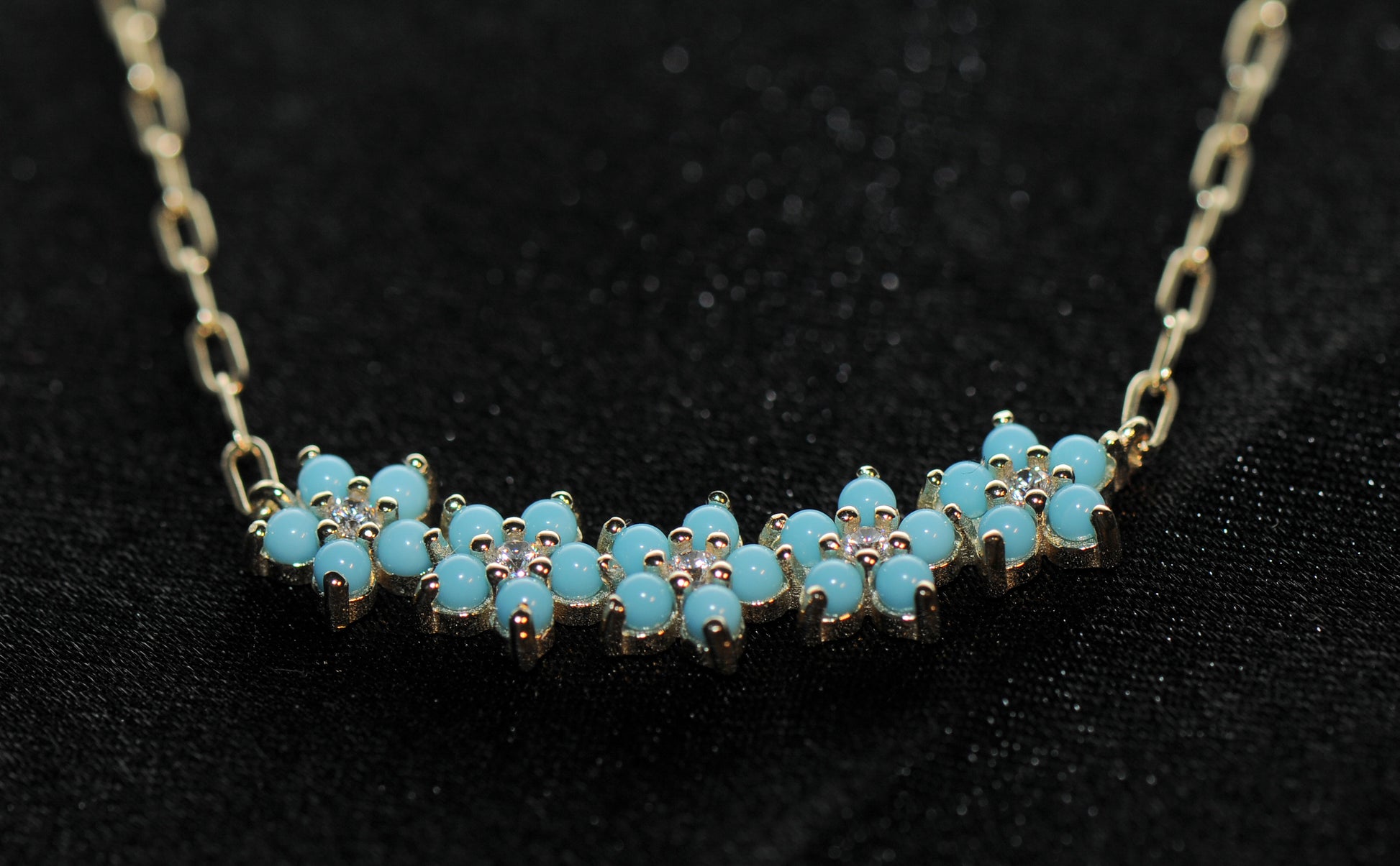 Introducing the Blue Flower Necklace, a beautiful and delicate piece crafted with 21cm of gold plating and an intricate blue flower pendant. This necklace exudes elegance and charm, perfect for any occasion.