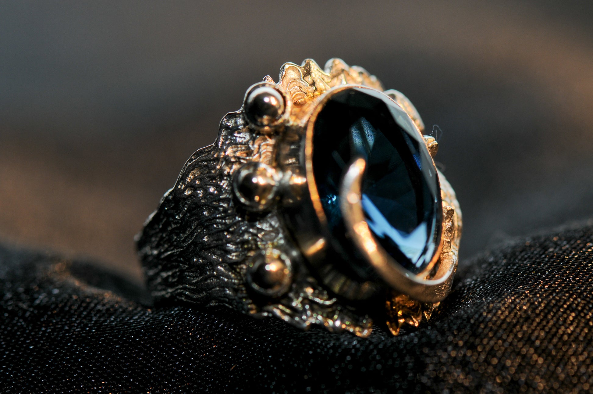 This vintage sterling silver ring features stunning blue stones and intricate lizard detailing, making it a unique and eye-catching addition to any collection.