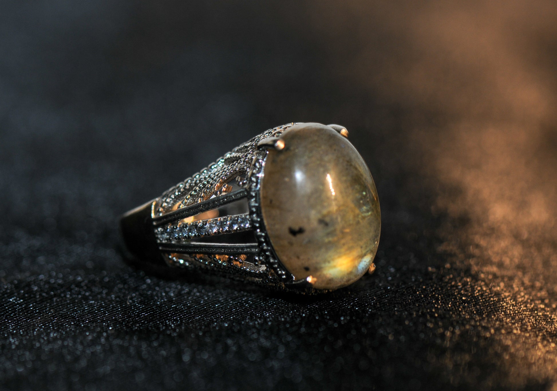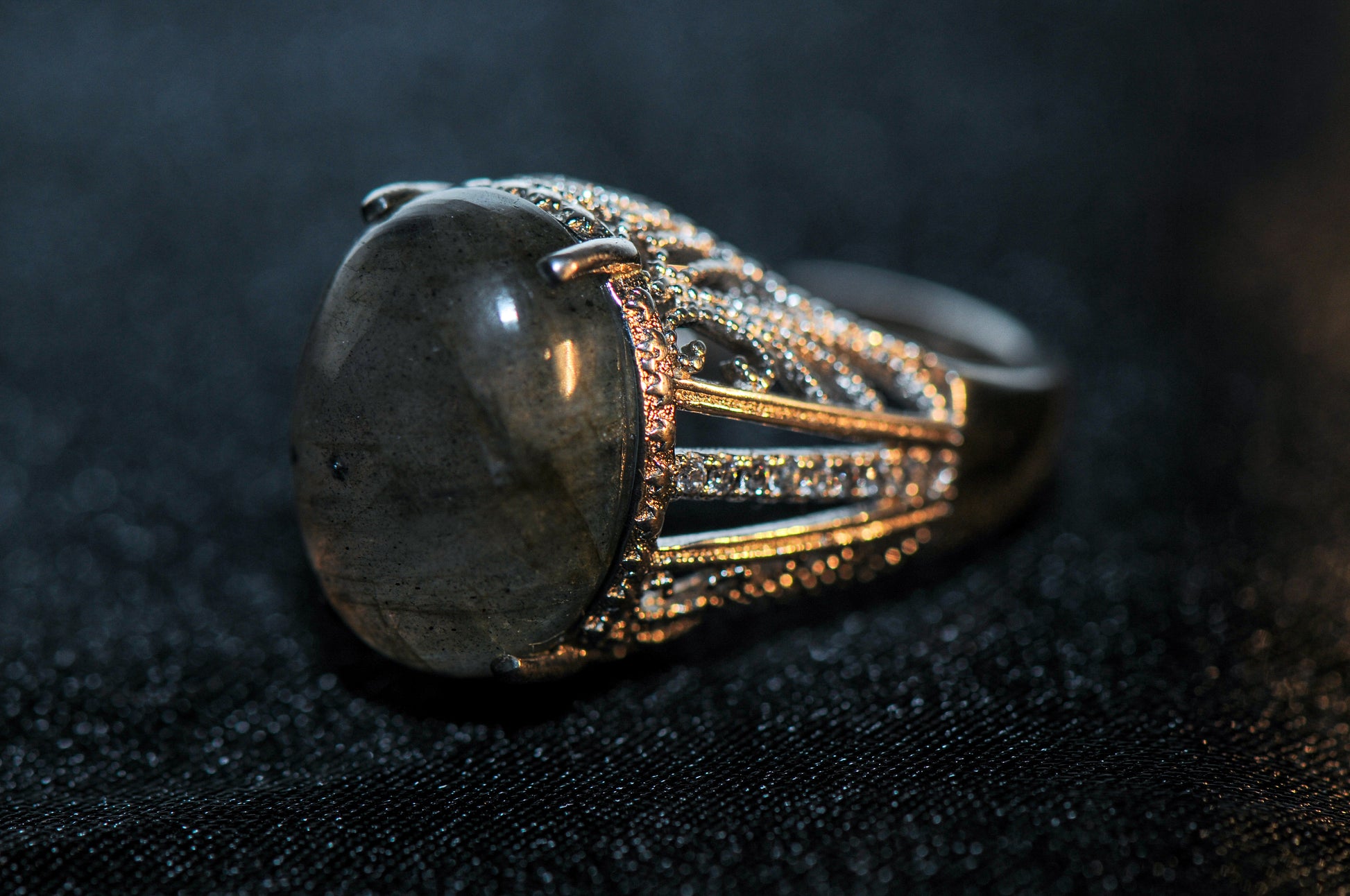 Expertly crafted in sterling silver, this vintage ring features an intricate design that adds a touch of glamour to any outfit. The beautiful grey moonstone sets this piece apart, while the adjustable band ensures a perfect fit. Elevate your style with this timeless and unique ring.