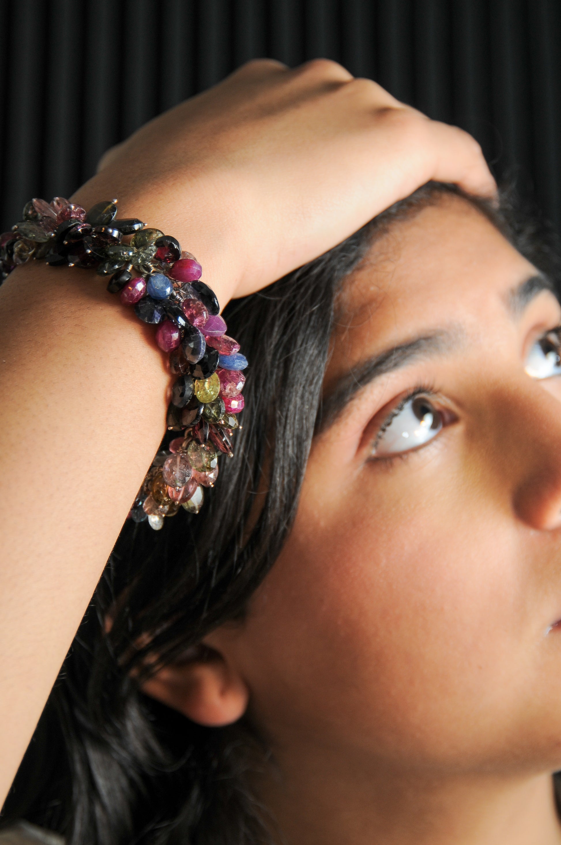 This turmoline and cetrine stone bracelet is individually wrapped and worked with sterling silver wiring, providing a durable and elegant accessory. The combination of stones is believed to promote balance and positivity, making it the perfect addition to your jewelry collection.
