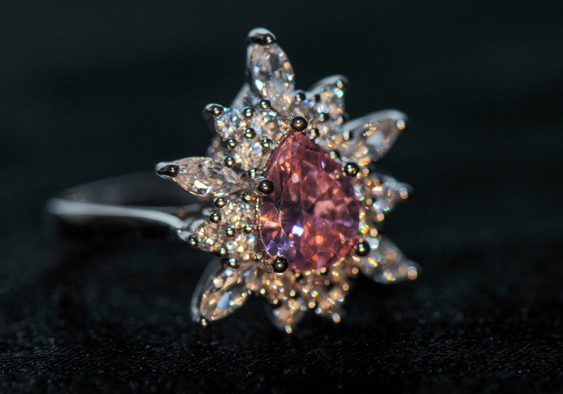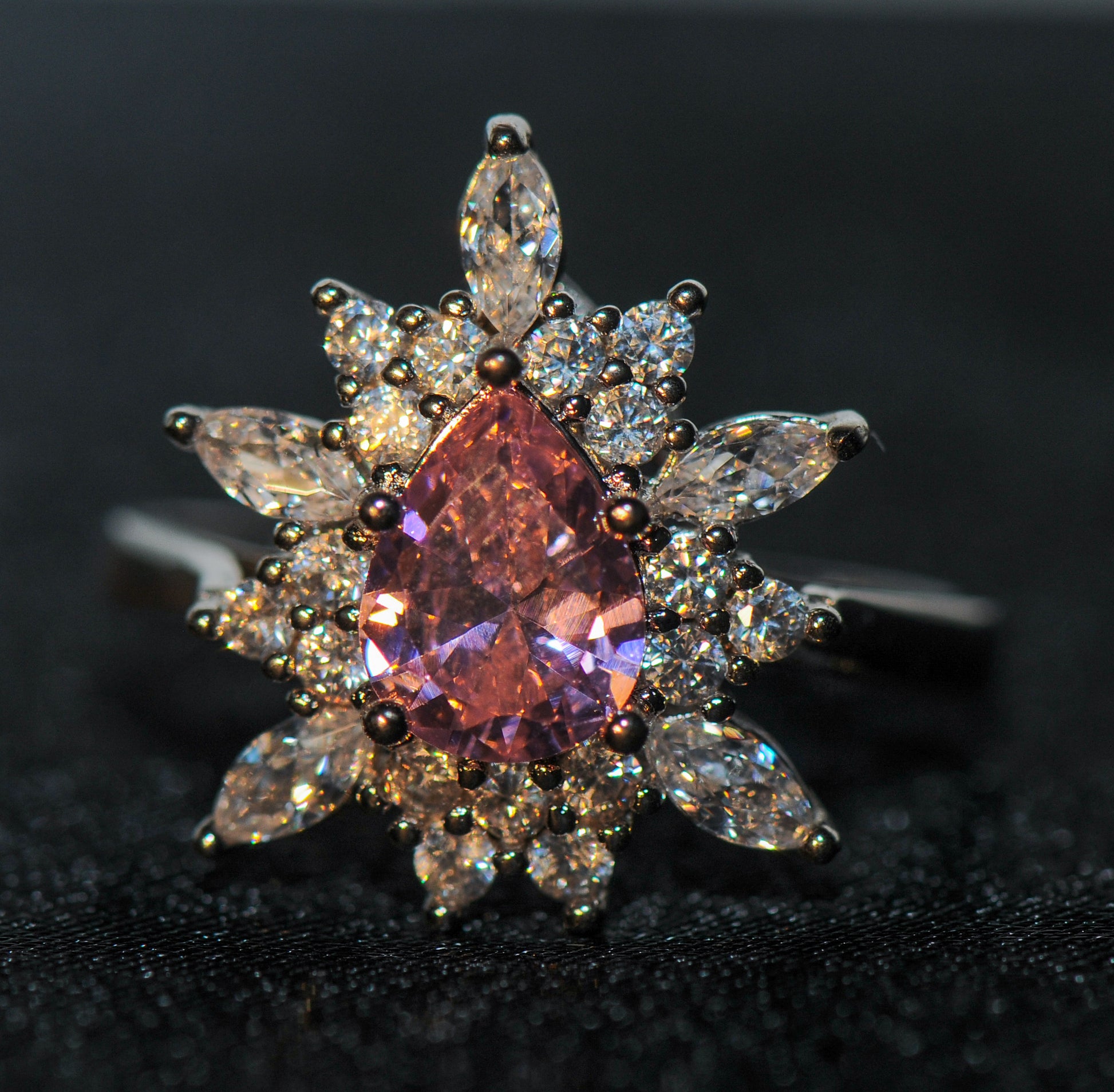 Pink Pear-shaped zirconia ring, SZ9.5, sterling silver