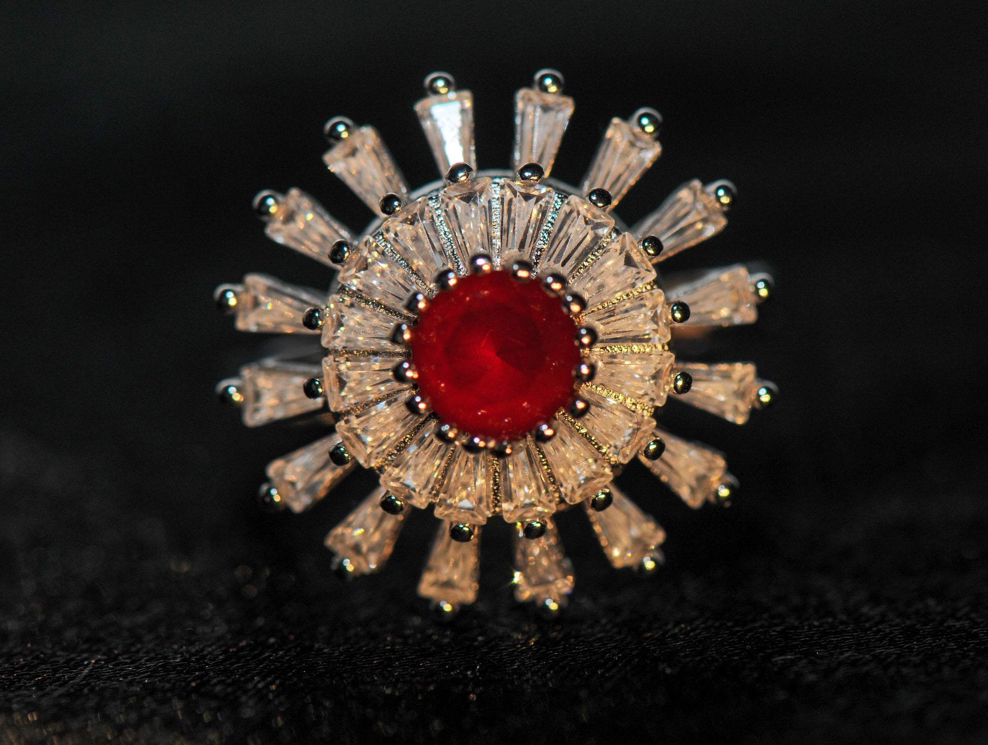Cubic Zirconia Red Sun Ring Sterling silver SZ7.25