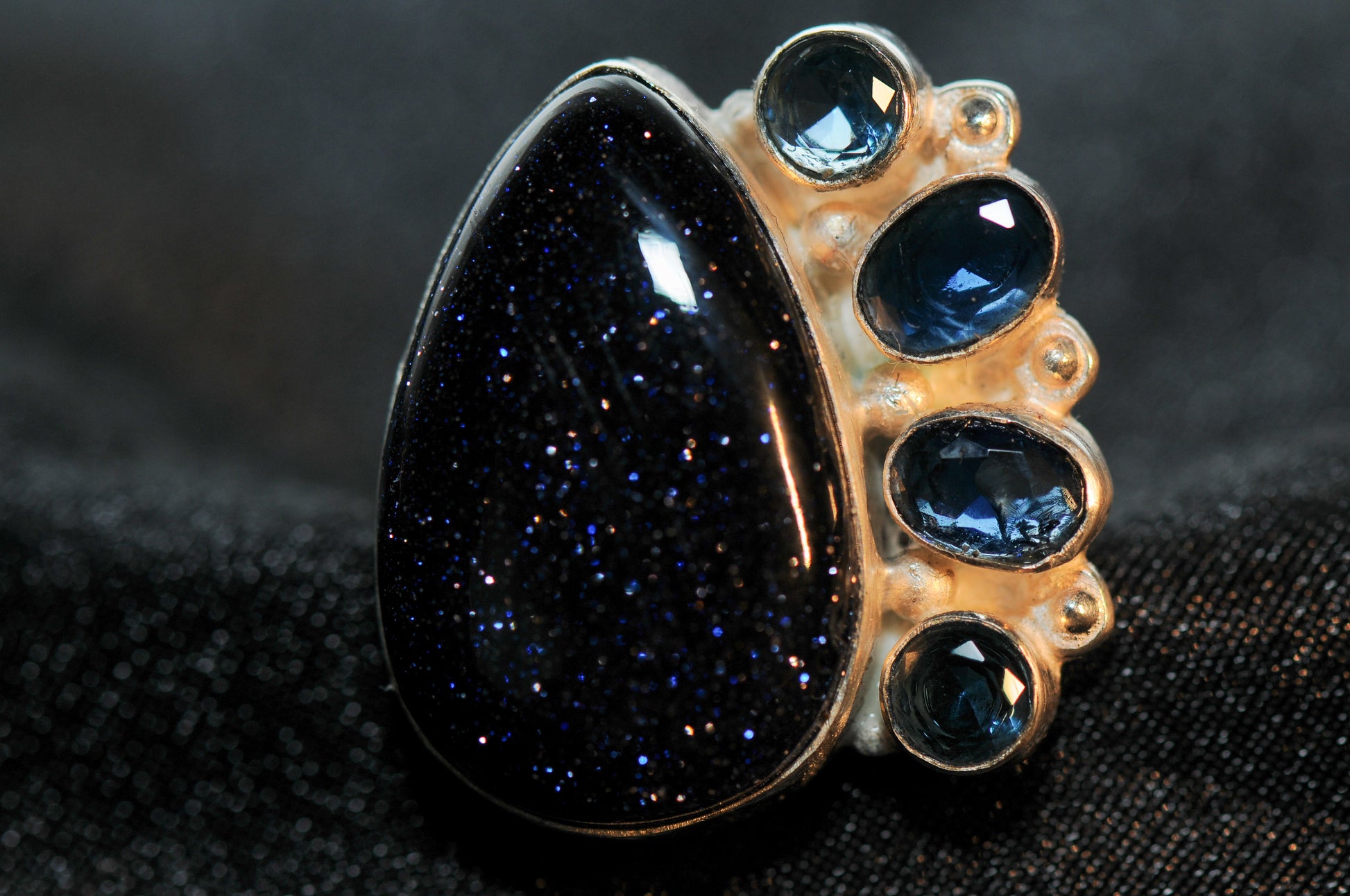 Expertly crafted in sterling silver, the Starry Night Ring features shimmering blue gemstones that evoke the magic of a starry night sky. A timeless piece that adds a touch of celestial beauty to any outfit.