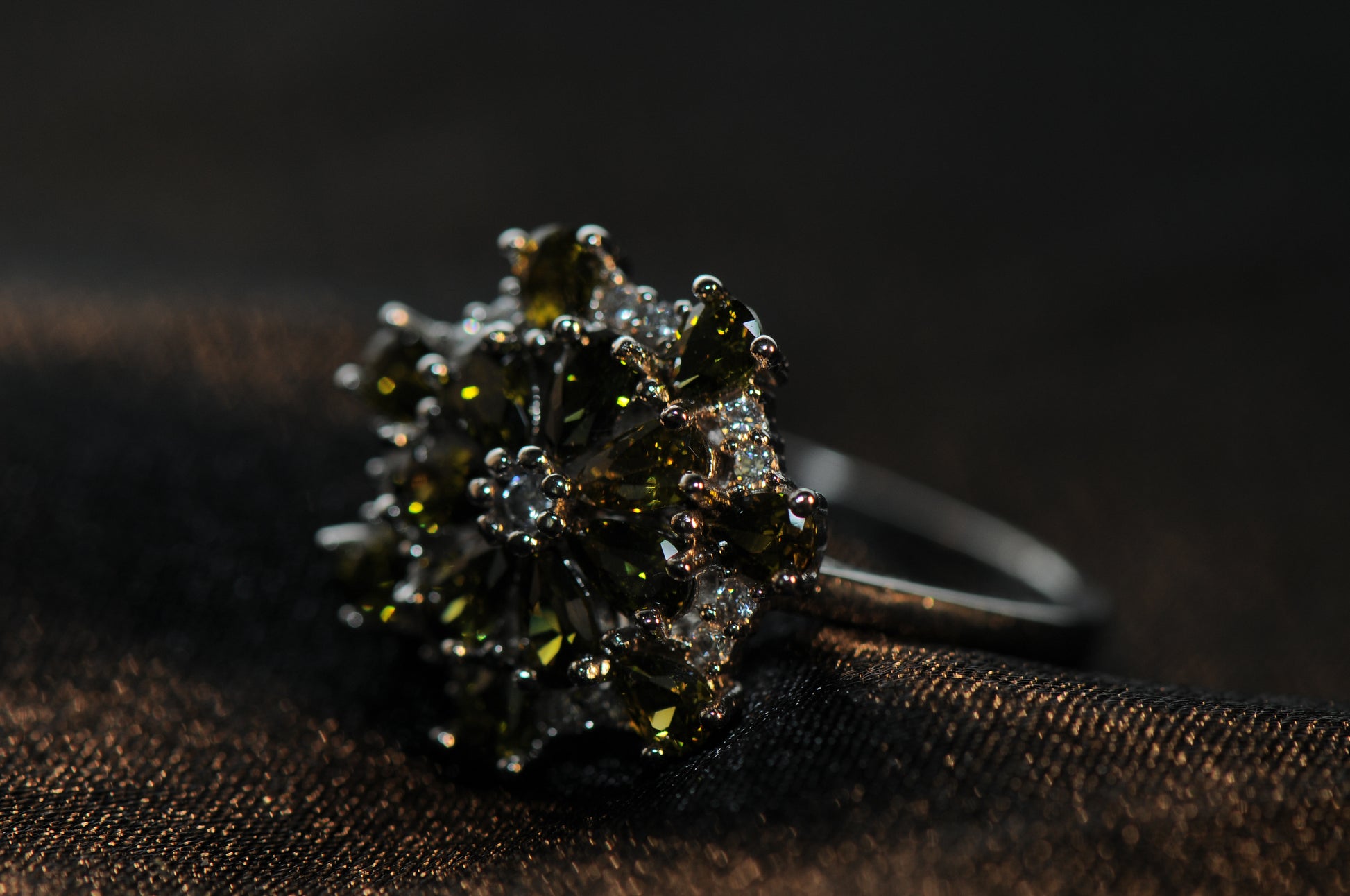 Crafted with sterling silver and adorned with vibrant green olive stones and sparkling cubic zirconia, the Sun Ray Green Ring boasts a unique sunray-inspired structure. Add a touch of elegance and natural beauty to any outfit with this exquisite piece.