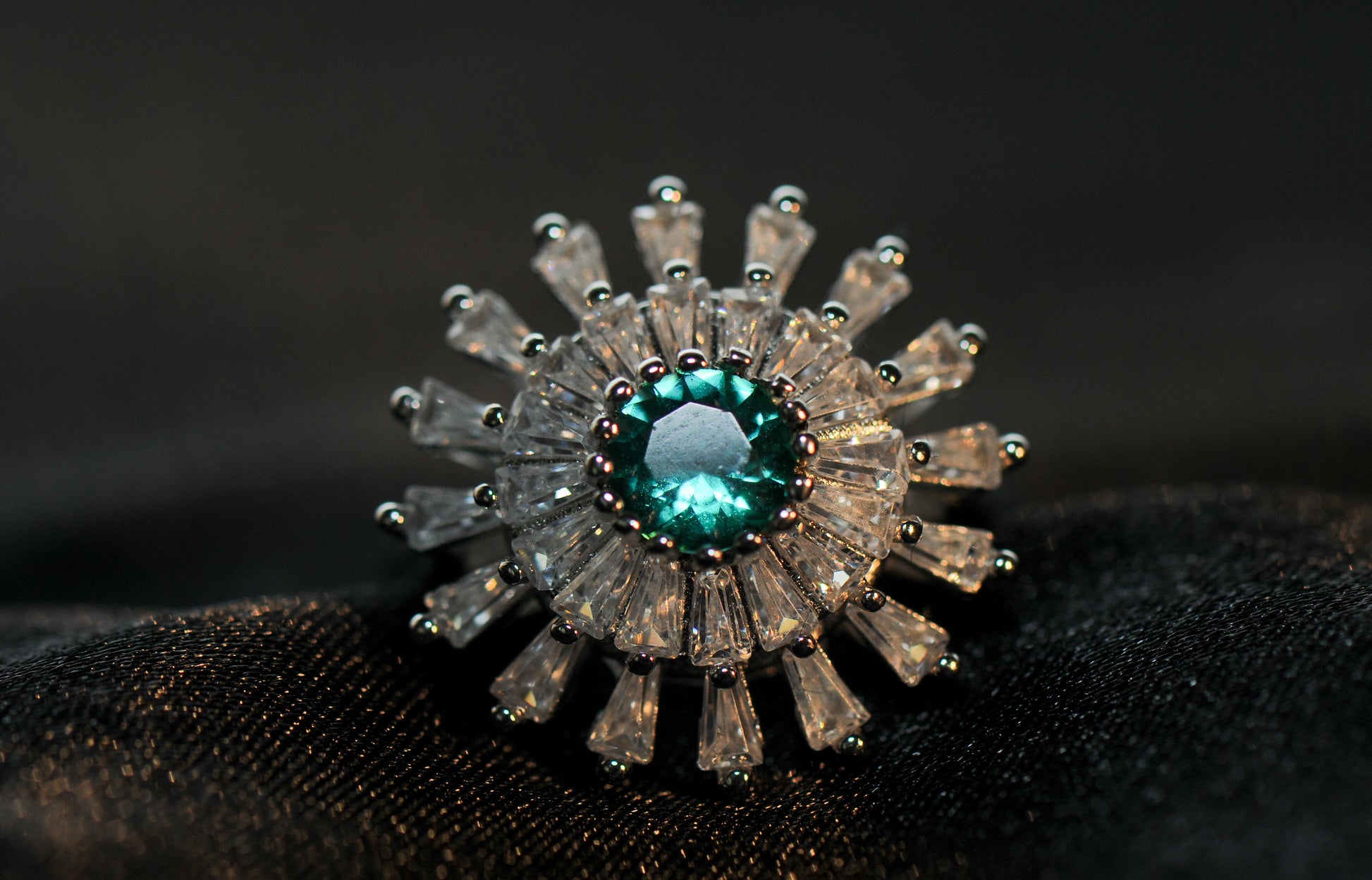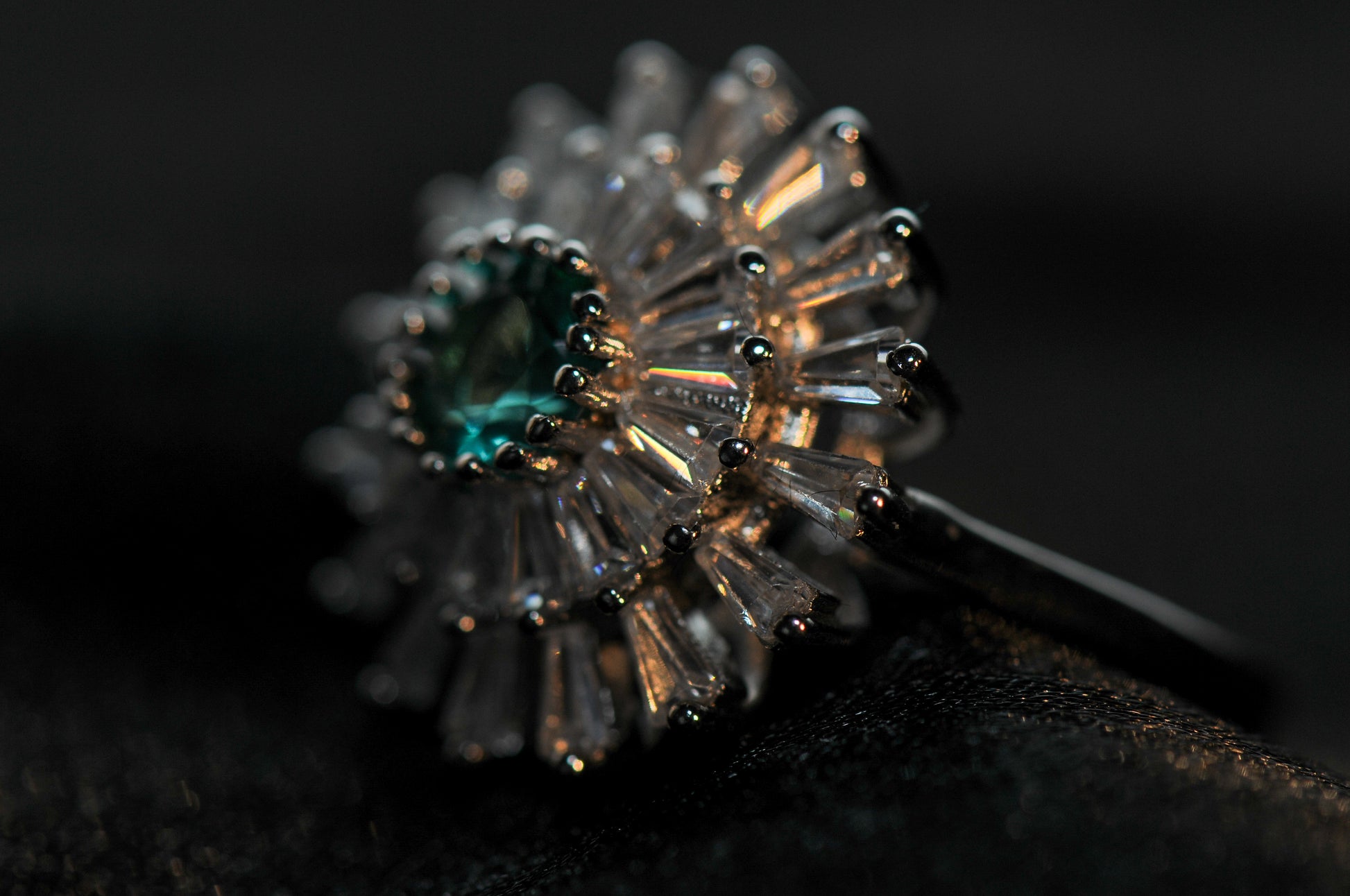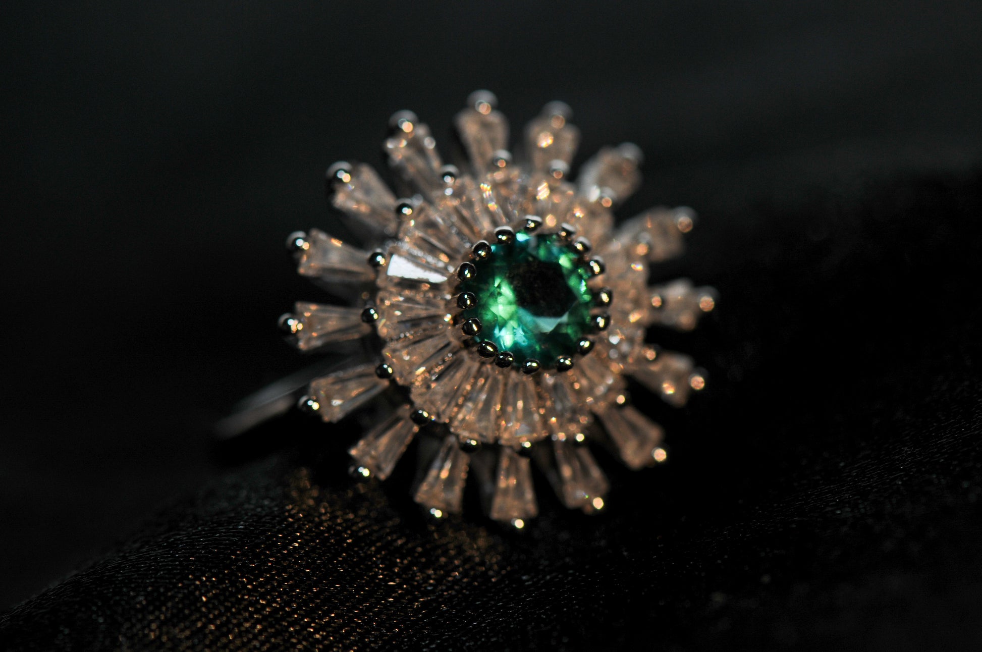 Cubic Zirconia Turquoise colored Sun Ring Sterling silver SZ7.5